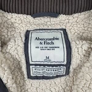 Stylish and warm Abercrombie & Fitch women’s utility outerwear parka in gray. Size Medium. Designed with both function and fashion in mind, this parka features a cozy sherpa lining and classic utility details.