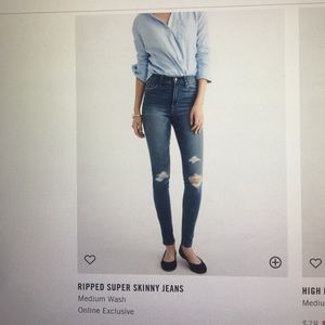 Brand new A&F jeans! Size 4 long or 27s. High wasted, super comfy, and ripped knees. They feel like jeggings but have real pockets. Included online photo of Jeans, but mine have less rips.