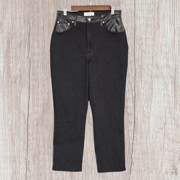 Abercrombie & Fitch Jeans 90s Straight High Rise Denim Faux Leather 10/30 Short
