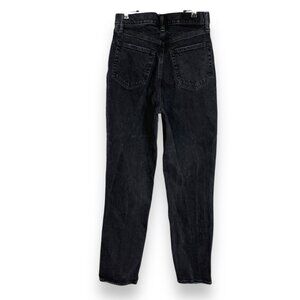 Abercrombie and Fitch Curve Love jeans in the "The '90s Straight Ultra High Rise" fit with a cross-over waistband. Faded black color.