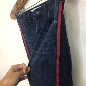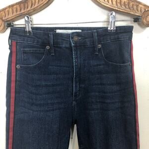 Abercrombie & Fitch Jeans High Rise Skinny Ankle Dark Wash Red Stripe Raw Hem