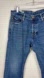 These medium wash jeans offer a slim but not excessively tight fit through the leg. The low rise provides a modern, tailored silhouette. Button fly, iconic five pocket styling. Light distressing on pocket seams and bottom leg hems.