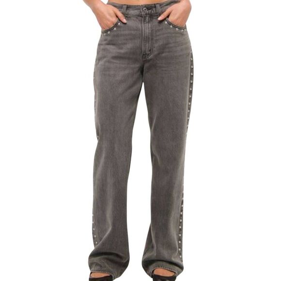 Abercrombie & Fitch Jeans Women's 33 Grey High Rise Curve Love Loose Studded