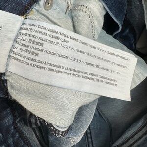 -Flaws: white spots on front right thigh, pulling between back pockets. See photos for closer view.