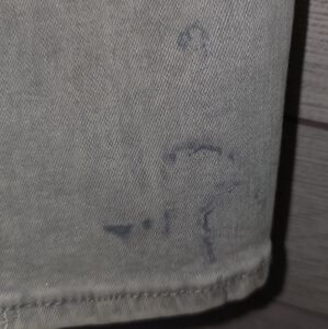 Condition: Pre-loved, two barely noticeable spots on back by pockets and some dye discoloration on lower leg indicated in photos.