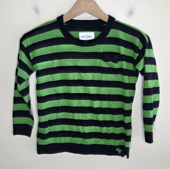 Abercrombie & Fitch Kids | Green Black Striped Sweater Bow Pocket Size Large