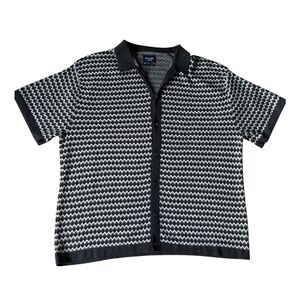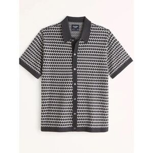 Abercrombie & Fitch Knit Cotton Blend Button Front Polo size XXL Black Gray White