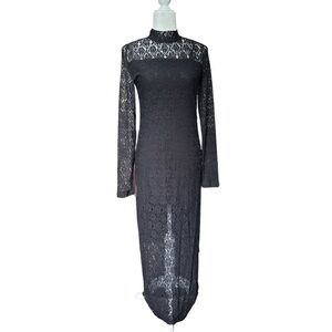 Abercrombie & Fitch Lace Black Bodycon Long Sleeve Maxi Dress Size Small
