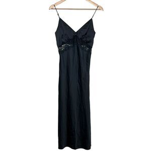 Abercrombie & Fitch Lace and Satin Slip Midi Dress Black Womens Small Tall