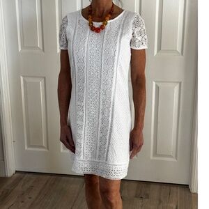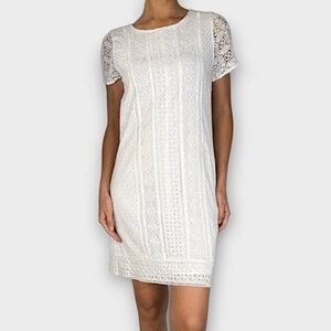 Abercrombie & Fitch Lace/Embroidered Shift Dress - White Size XS