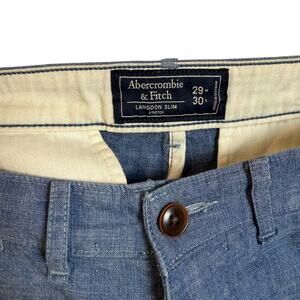 Abercrombie & Fitch Langdon Slim Fit Chino Pants Mens Blue Stretch Cotton. Pants measure 30x29 inches. Tag says 29x30. Please see photos for measurements.