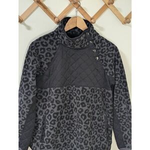Abercrombie & Fitch Leopard Print Snap Fleece Pullover Sweater - Size M