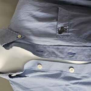 Elevate your wardrobe with this classic blue striped men's shirt. Perfect for both casual and formal occasions. Cross posted mens/womens