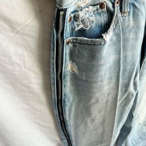 Abercrombie & Fitch Distressed Light Wash Annie High Rise Girlfriend Jeans w/ Zippers on the sides