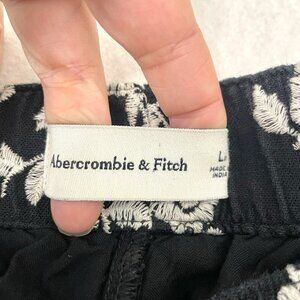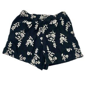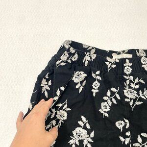 Abercrombie & Fitch Linen Blend Embroidered Floral Pull-On Shorts Black sz Large