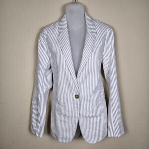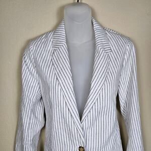 Abercrombie & Fitch Linen Blend Striped Blazer Preppy Classic Career Womens S