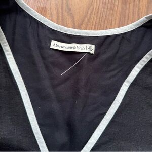 Abercrombie & Fitch— Linen blend tank with tie from detail • allover black with white trim detail • sleeveless • V-neck with open front • Linen, viscose