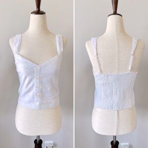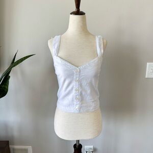 Abercrombie & Fitch Linen Blend White Button Front Detail Tank Top