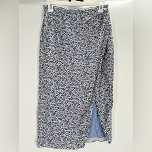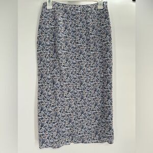 Abercrombie & Fitch Linen Midi Skirt Side Slit Blue Floral