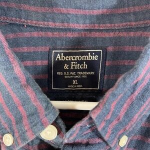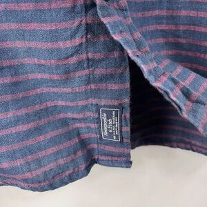 Abercrombie & Fitch Linen Shirt Mens XL Striped Blue Red Long Sleeve Button Down