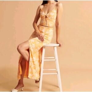 Abercrombie & Fitch Long Maxi Wrap Skirt Womens S Boho Orange Floral Slit Beach