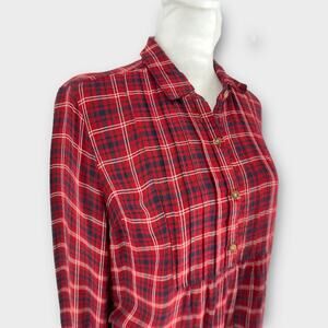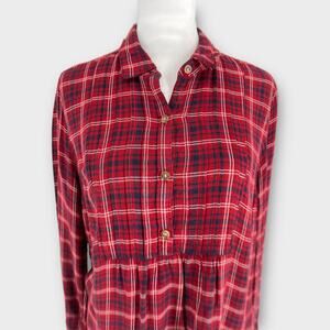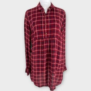 Abercrombie & Fitch Long Red Plaid Shirt Dress Pockets Button Down Small Y2K 90s
