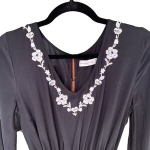 Abercrombie & Fitch - Long Sleeve Black Romper with Floral Embroidery Sz Medium