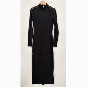 Abercrombie & Fitch Long Sleeve Lace Maxi Dress, Sz Small, Mock Neck Witchy Goth