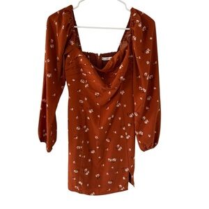 Abercrombie & Fitch Long-Sleeve Draped Bodice Mini Dress in Orange Spice