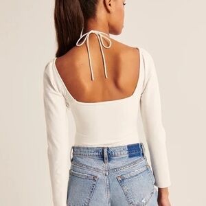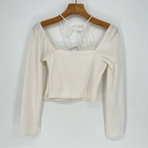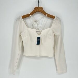 Abercrombie & Fitch Long-Sleeve Keyhole Strappy Blouse in White Size S