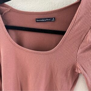 Abercrombie & Fitch Long-Sleeve Scoop-Neck Tee in terracotta red