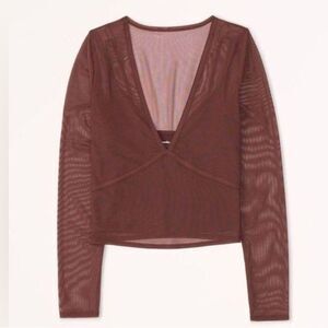 ✨ Abercrombie & Fitch Long-Sleeve V-Neck Mesh Top Brown Small
