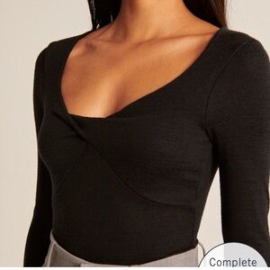 Abercrombie & Fitch Long-Sleeved Soft A & F Cozy Twist Bodysuit Blue Black Knit