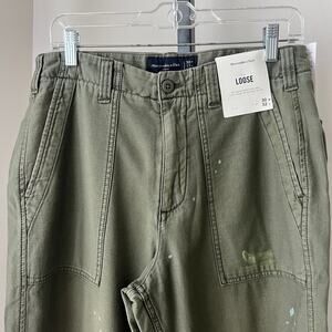 Tags: rugged, artsy, vintage inspired, workwear, utilitarian, streetwear, grunge, vintage americana, 90's skater, art student, creative, casual, loose fit, olive green, New with tags abercrombie and fitch