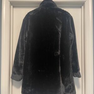 Abercrombie & Fitch Luxe Faux Fur Coat. Lined. Size small. Soft. Large Collar. Lined pockets. Color is black. Gently used. Color may vary in photos and real life as color is more like first photo than second due to flash in second photo.