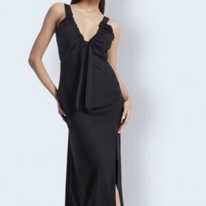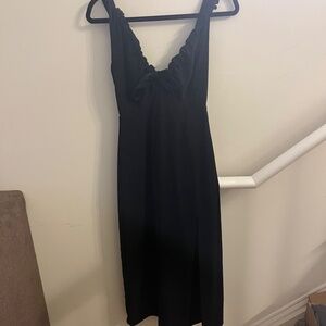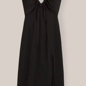 Abercrombie & Fitch Matte Black Satin Midi Slip Dress with Cinched Neck & Slit in size XS. In good condition still, simple and classy dress great for any occasion!