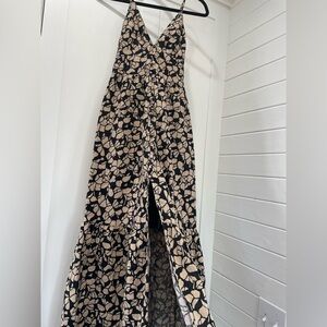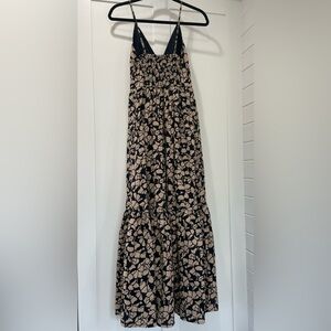 Linen/cotton blend maxi dress with center slit and smocked back.