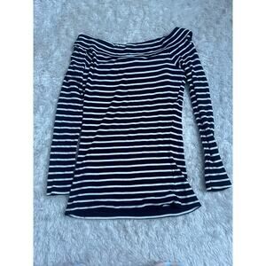 Abercrombie & Fitch Medium Navy Blue White Striped Off The Shoulder Top Ribbed
