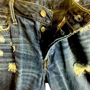 Abercrombie & Fitch Men Blue Distressed Button Fly Denim Shorts