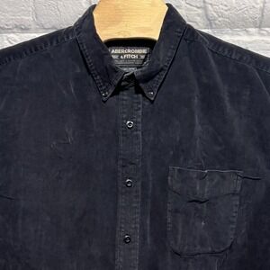 Abercrombie Fitch Men Corduroy Button Down Blue Cotton Long Sleeve Heavy Sz XL