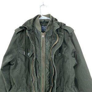 Abercrombie & Fitch Men Sz S Military Hooded Quilted Lining Canvas Field Jacket