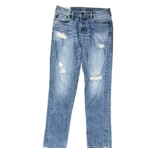 Classic 100% Cotton Classic taper Abercrombie & Fitch jeans with a straight leg cut. Features back pockets with distressing such as rips and tears. Perfect for casual wear