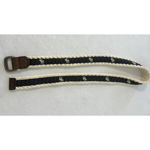 Abercrombie & Fitch Mens Belt Embroidered Canvas Navy & Cream Rope Trim