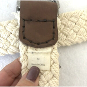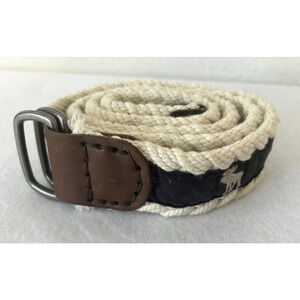 ABERCROMBIE & FITCH MEN'S EMBROIDERED CANVAS BELT NAVY & CREAM ROPE TRIM