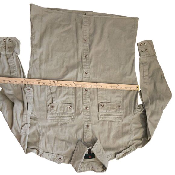 Stylish light gray button-down shirt. Features dual chest pockets. Perfect for casual wear.