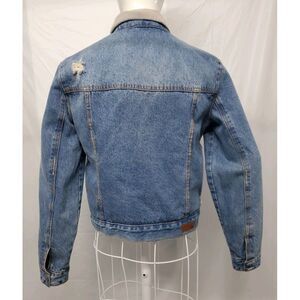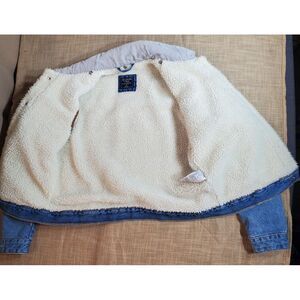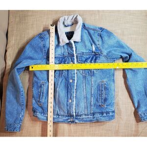 Abercrombie & Fitch Mens Distressed Sherpa Trucker Blue Denim Jacket Medium
