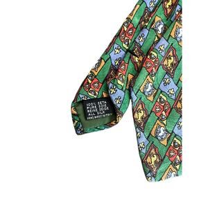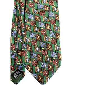 Abercrombie & Fitch Men's Green Blue 100% Silk Flag Print Adjustable Neck Tie