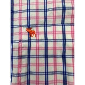 Abercrombie & Fitch Mens Large Muscle Pink Blue Plaid Long Sleeve Button Up