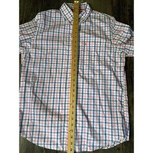 This Abercrombie & Fitch button-up shirt is the perfect addition to any casual wardrobe. The shirt features a collared neckline with a button-down style, long sleeves, and a classic fit. It is made from a comfortable cotton blend fabric with a knit texture and features a multicolor plaid pattern. The shirt also has a button-up closure and comes in size L. In addition to its stylish design, this shirt has several practical features. It has pockets for added convenience and is machine washable for easy care. The shirt is perfect for any season, whether it's winter, summer, fall, or spring. It has a preppy American theme and is ideal for casual occasions.