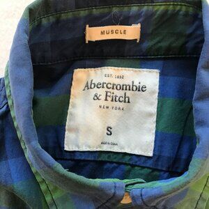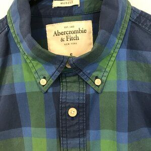 Abercrombie & Fitch Men's Long Sleeve Muscle Shirt Size Small Blue Green Plaid